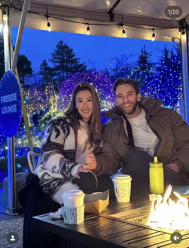 42岁的谢婷婷太会撒糖了!刚和小7岁的澳洲男友Mathew牵手满两年,就带着6岁女儿、未满周岁的儿子躲进加拿大度假村庆祝,烤火炉前拥吻、圣诞人形板合照,满屏都是藏不住的幸福,这日子简直甜到齁!