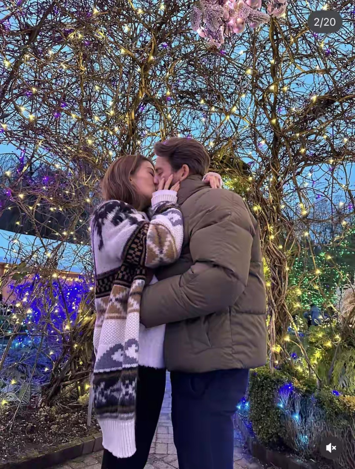 作为出了名注重仪式感的人,这次两周年纪念日,谢婷婷早就精心策划好了一切。虽然加拿大的冬天冷得让人裹紧棉袄,但度假村的布置却暖到心底——枯藤老树枝上缠满了闪烁的串灯,夜里一亮像缀满了星星,户外的烤火炉燃着暖光,氛围感直接拉满。