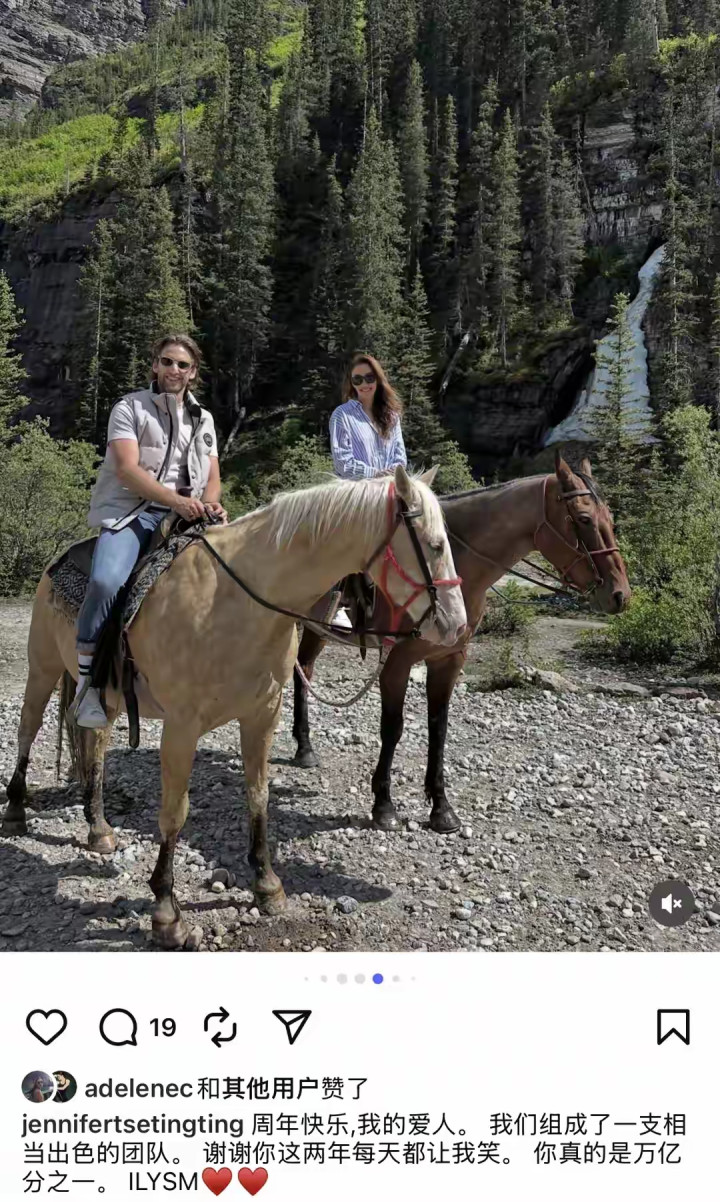 她在配文里写道:“周年快乐,我的爱人!这两年里,你每天都让我满心欢喜,我们组建了超棒的小团队。” 字里行间全是对Mathew的认可,也藏着对一家四口生活的满足。