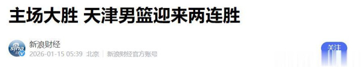 新浪财经——主场大胜 天津男篮迎来两连胜