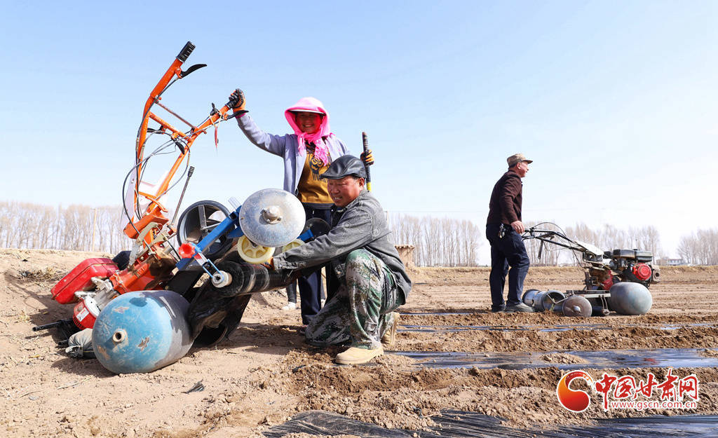 r连日来,随着气温逐渐回升,张掖市临泽县平川镇制种玉米基地全面进入覆膜保墒阶段。农户正按照精细化制种要求,有序开展划线、施肥,并操作小型专用覆膜机覆膜保墒,田间地头一派繁忙景象。